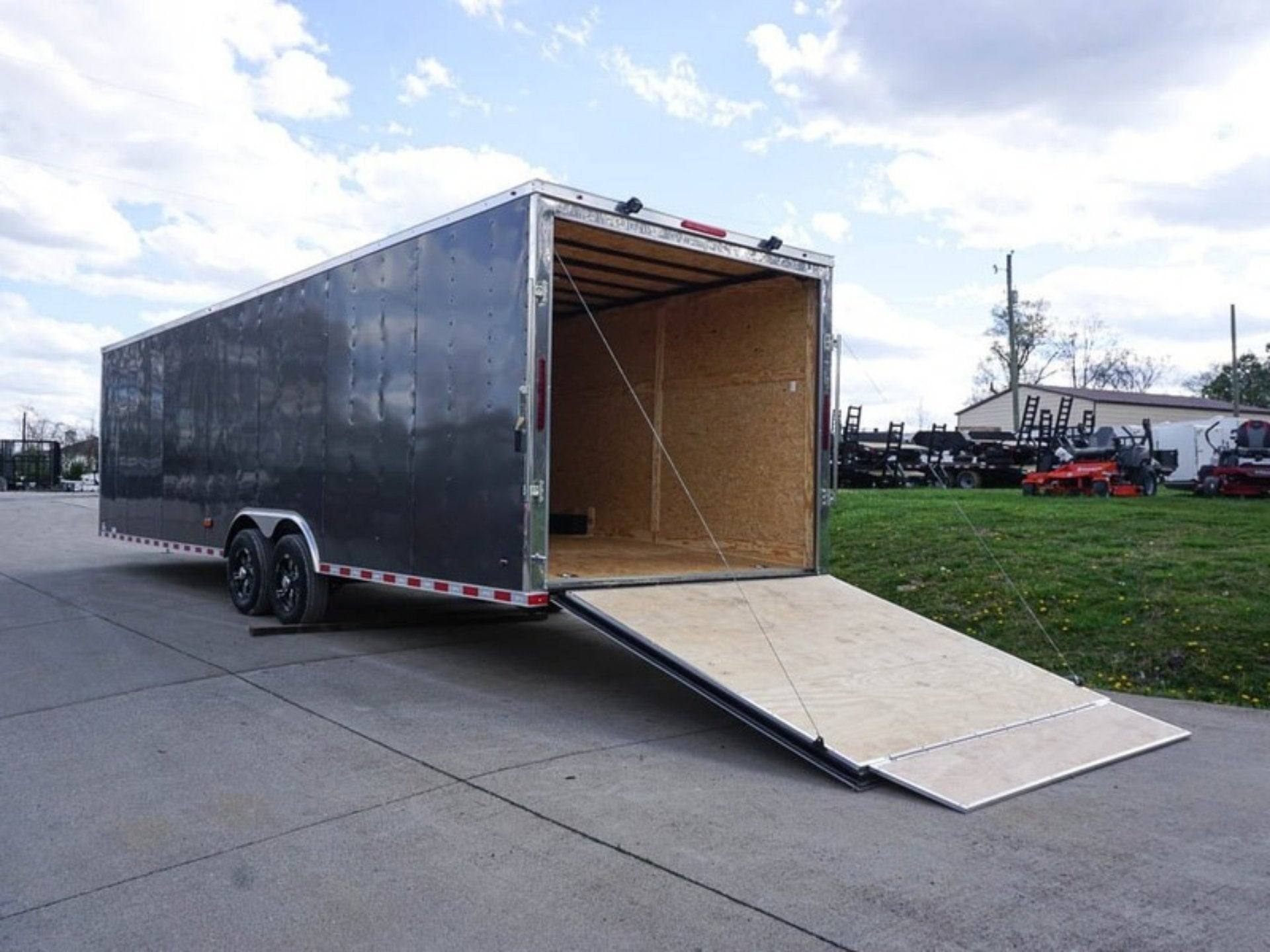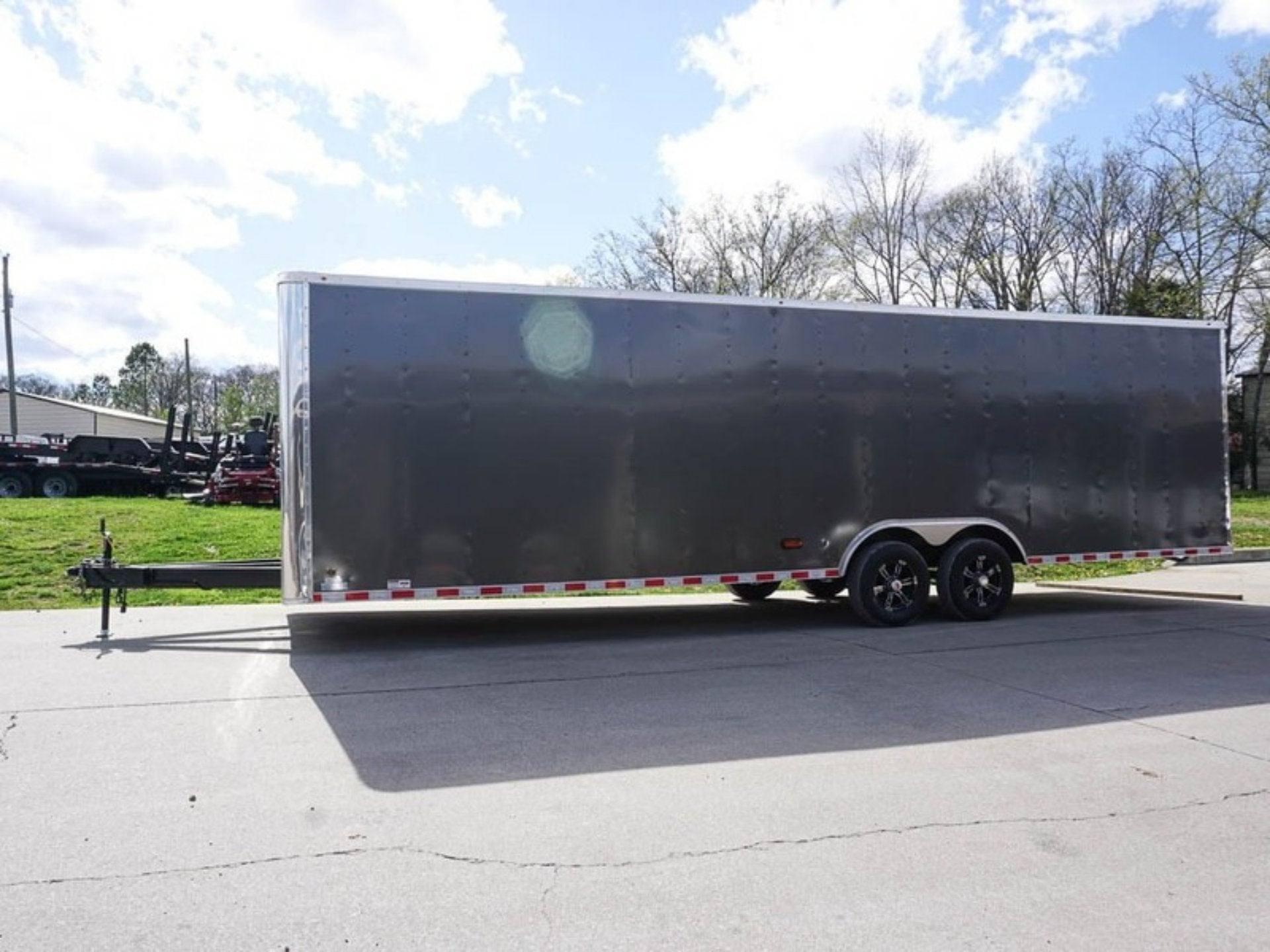 8.5X28 Custom Charcoal now available at Equilhaul! Built for performance and value, this model is perfect for those needing a charcoal flat nose. As a 8.5×28 custom charcoal flat nose enclosed trailer (2) 5200 axles storage, it meets the demands of both residential and commercial needs. Order now or call +1 (425) 453-7123 for fast delivery across the U.S.